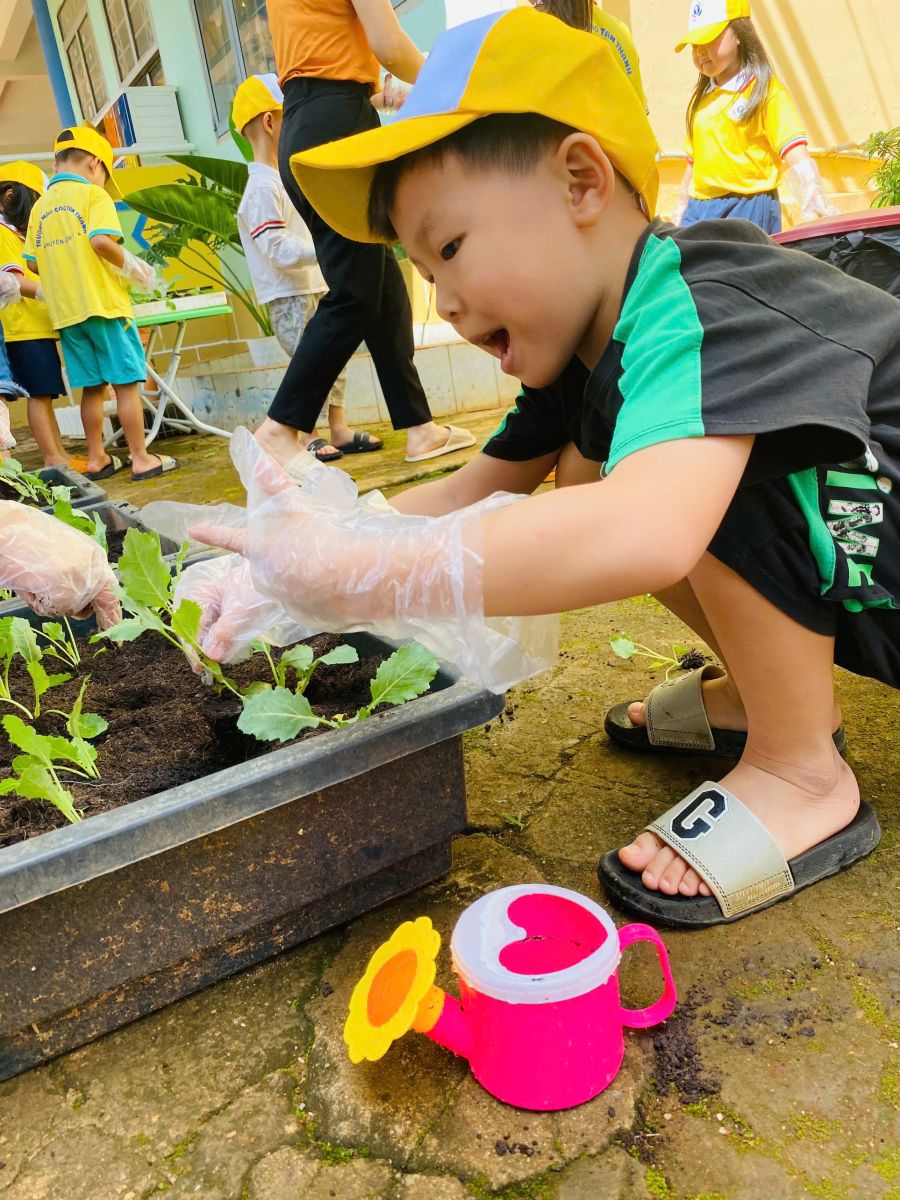Với không gian xanh mát, tươi mới, các bé đã có cơ hội khám phá và tìm hiểu về thế giới thực vật ngay trong khuôn viên trường. Từ những mầm rau nhỏ xíu, đến những cây rau đã trưởng thành, những cây hoa nhỏ xíu đến lúc cây ra hoa kết trái bé nào cũng hào hứng khi được tận tay chăm sóc cho cây cối và ngắm nhìn những cây rau phát triển từng ngày.