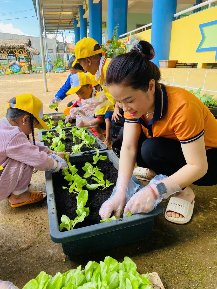 • Hoạt động “Trồng rau” là một phần trong chương trình giáo dục lấy trẻ làm trung tâm mà nhà trường đang triển khai, giúp trẻ vừa học, vừa chơi, vừa sống chan hòa với thiên nhiên.