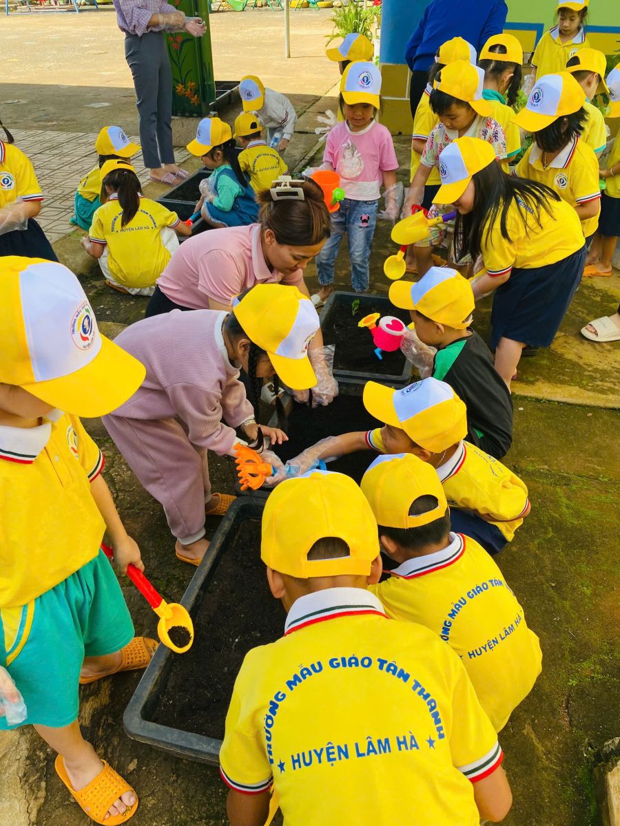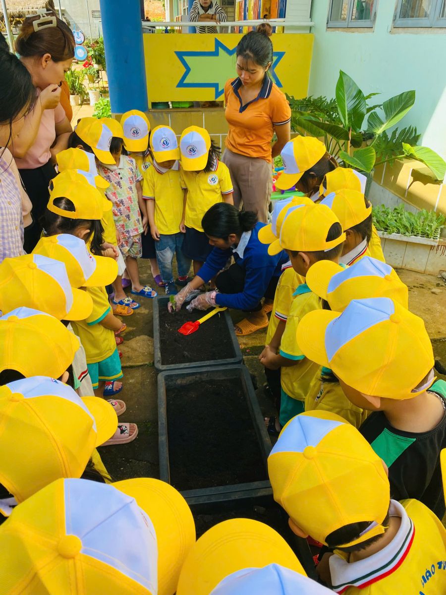 Bé nào cũng rất thích thú khi lần đầu tiên được tự tay xúc đất, gieo hạt và tưới nước cho “khu vườn nhỏ” của mình. Mặc dù tay còn vụng về, lấm bẩn, nhưng ánh mắt các con ánh lên niềm vui, sự tò mò và lòng háo hức mình. Mặc dù tay còn vụng về, lấm bẩn, nhưng ánh mắt các con ánh lên niềm vui, sự tò mò và lòng háo hức chờ đợi những mầm xanh đầu tiên nhú lên từ đất.