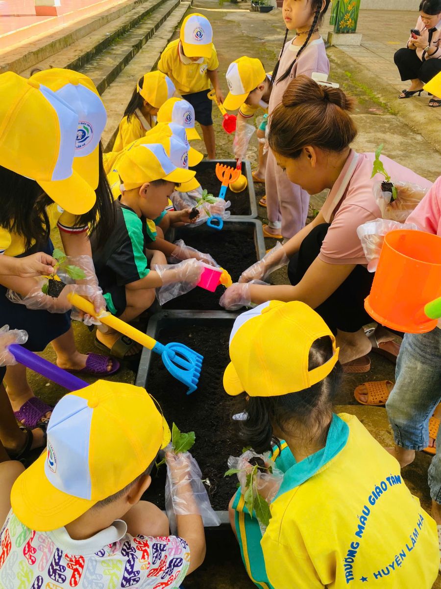 Cô và trò trường Mẫu Giáo Tân Thanh tổ chức hoạt động trải nghiệm trồng rau