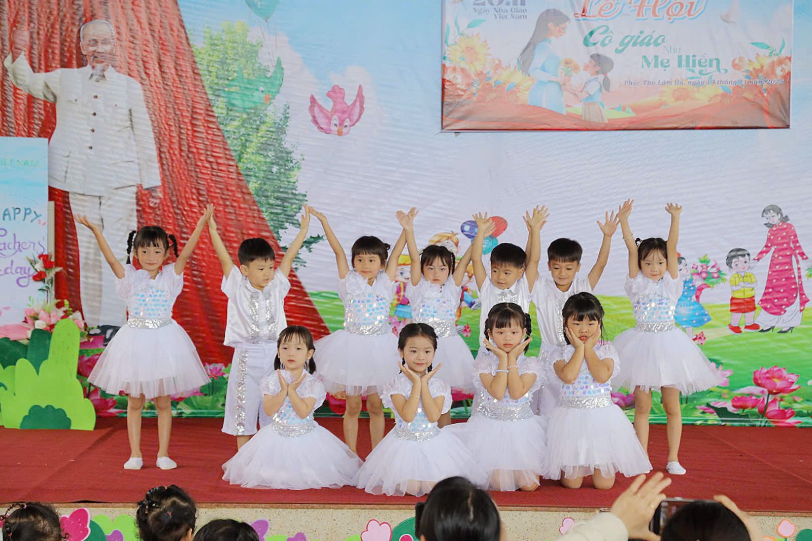 Khép lại chương trình là tiết mục nhảy “Lời Ca Tri Ân” do các bé lớp Lá 1 biểu diễn. Với những động tác hồn nhiên nhưng đầy cảm xúc, các bé gửi gắm lời cảm ơn chân thành nhất đến thầy cô – những người đã luôn đồng hành, yêu thương và nâng bước các em trên hành trình trưởng thành. Màn trình diễn không chỉ là dấu ấn kết thúc đẹp đẽ cho chương trình, mà còn là khoảnh khắc lan tỏa yêu thương và sự biết ơn sâu sắc.