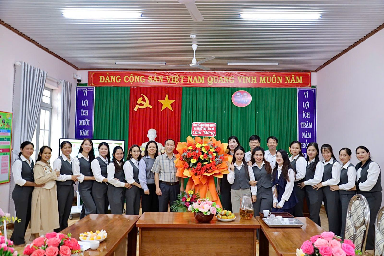 Cùng trong ngày lễ hội, nhân dịp kỷ niệm Ngày Nhà giáo Việt Nam 20/11, nhà trường vô cùng vinh dự được đón tiếp các đồng chí lãnh đạo xã Phúc Thọ Lâm Hà đến thăm và chúc mừng. Sự hiện diện của quý lãnh đạo là niềm động viên lớn lao đối với tập thể cán bộ, giáo viên và học sinh, góp phần tạo nên không khí trang trọng, ấm áp cho ngày lễ. Nhà trường trân trọng cảm ơn sự quan tâm và những tình cảm tốt đẹp mà quý lãnh đạo đã dành tặng, đây sẽ là nguồn khích lệ để nhà trường tiếp tục phấn đấu, nâng cao chất lượng giáo dục trong thời gian tới.