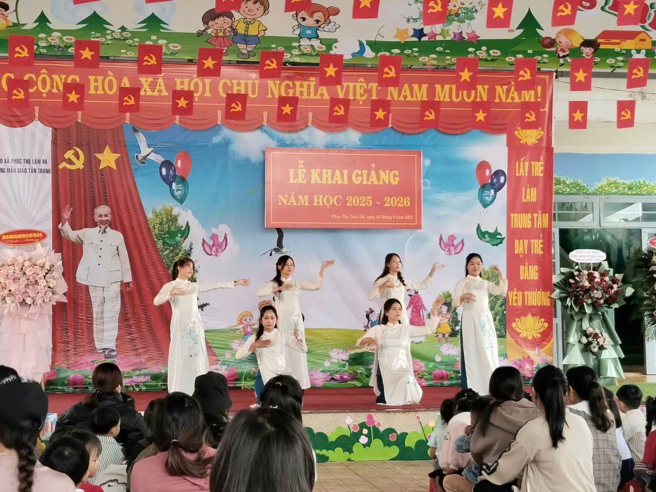 Không khí buổi lễ thêm phần sôi động với các tiết mục văn nghệ đặc sắc do các cô giáo của trường biểu diễn. Với tà áo dài thướt tha và nụ cười rạng rỡ, các cô đã biểu diễn những điệu múa uyển chuyển, những bài hát vui tươi, truyền tải không khí phấn khởi của năm học mới. Tiết mục của các cô vừa mang tính nghệ thuật, vừa thể hiện tình yêu nghề, tình thương dành cho học trò, khiến toàn thể phụ huynh và học sinh đều cảm nhận được sự ấm áp và gần gũi. Chương trình văn nghệ đã góp phần làm cho buổi lễ khai giảng thêm phần sôi động, ý nghĩa và tràn ngập niềm vui.